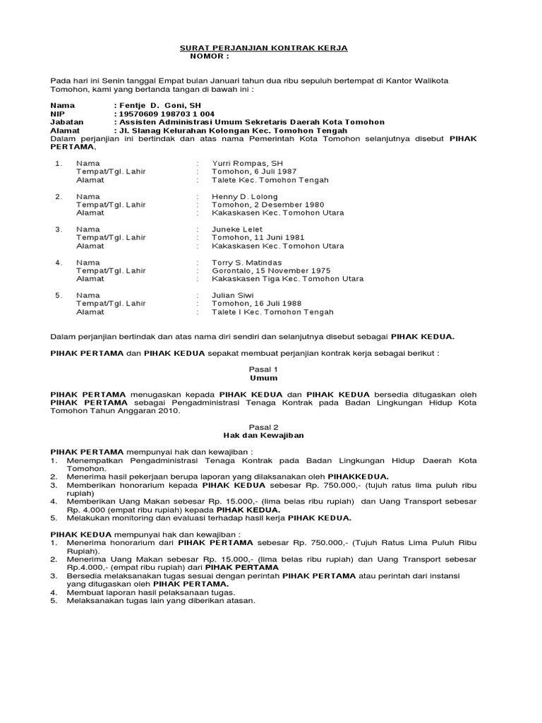 Pedoman tata kerja tentang administrasi kontrak kerja sama halaman 3 dari 18 ditetapkan tanggal : Isi kontrak o umum o administrasi o teknis ii. Ada perusahaan yang sedang membuka kesempatan lowongan kerja kontrak kerja administrasi, staf administrasi, staf administrasi hr, product manager dan banyak lagi melalui indeed.com. Perjanjian kontrak dimaksud dalam pasal 1 berlangsung dalam jangka waktu. Administrator kontrak atas permintaan pengguna jasa menyiapkan perintah perubahan pekerjaan dan disampaikan ke direksi proyek.